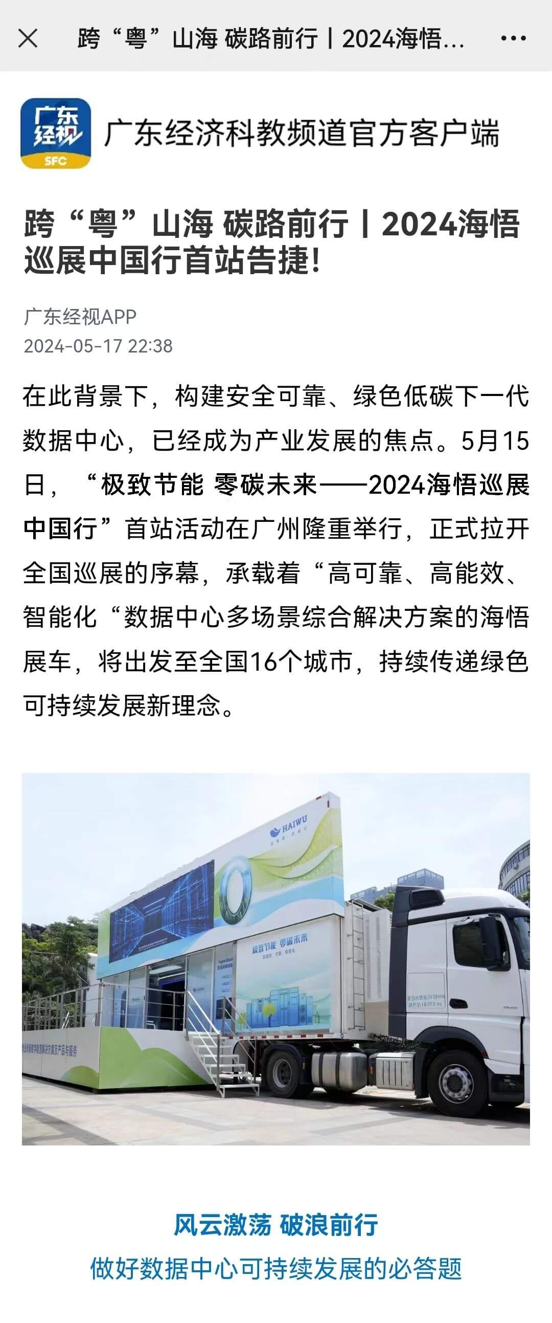 海悟帶著綠色數據中心解決方案走向全國,廣東經濟科教頻道亦對海悟巡展中國行廣州站做了詳細報道。