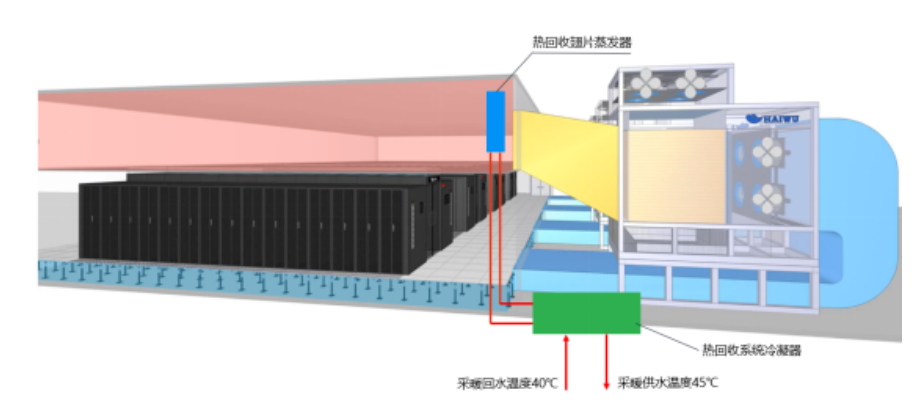 住房城鄉建設部印發的《綠色數據中心建筑評價技術細則》指出:數據中心輔助區和周邊區域有供暖或生活熱水需求時,宜設計能量綜合利用方案,回收主機房空調系統的排熱作為熱源,宜采用熱泵機組回收排熱。