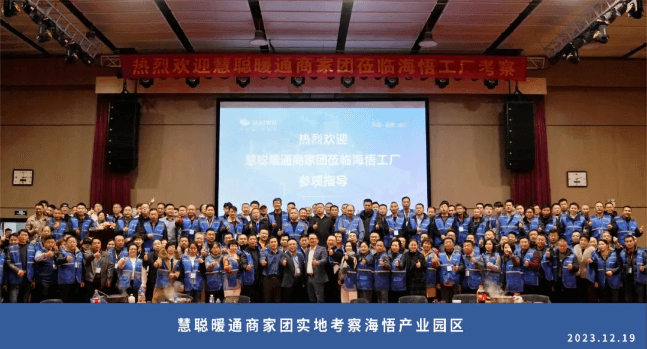 本屆大會(huì)新增工廠實(shí)地考察環(huán)節(jié),12月19日下午,由全國各地超過150名經(jīng)銷商、代理商、服務(wù)商、采購商組成的慧聰暖通商家團(tuán)蒞臨海悟產(chǎn)業(yè)園區(qū)考察。