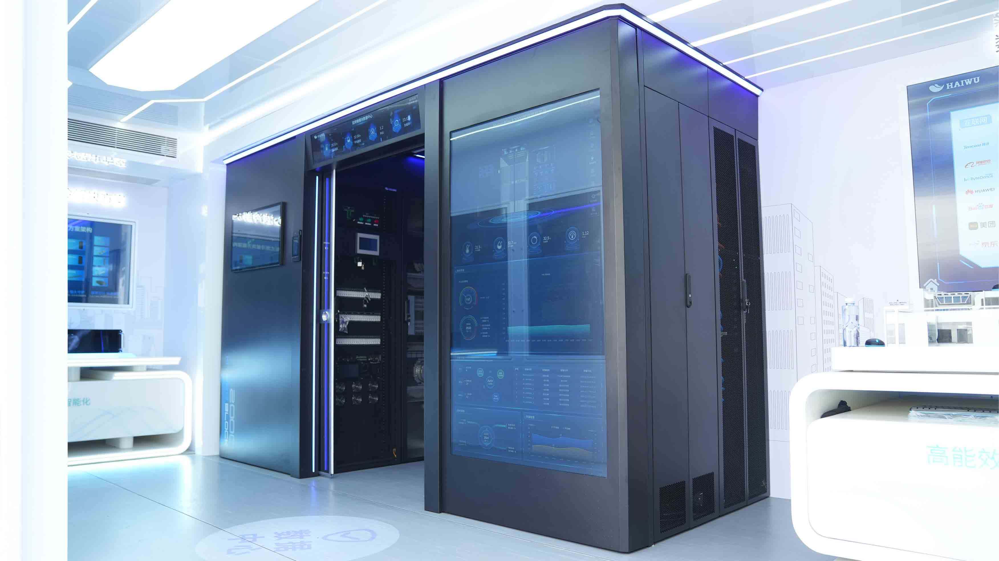 海悟在本次巡展活動中全新推出液冷微模塊HyperBlock2000-LW,液冷系統可滿足15~72kW/柜的高功率密度散熱需求,模塊化設計、預制化生產實現靈活配置、極簡安裝、快速部署,提供PUE<1.15的高功率密度場景液冷數據中心綠色節能解決方案,有力支持大模型訓練和推理等類型的數據運算和存儲。